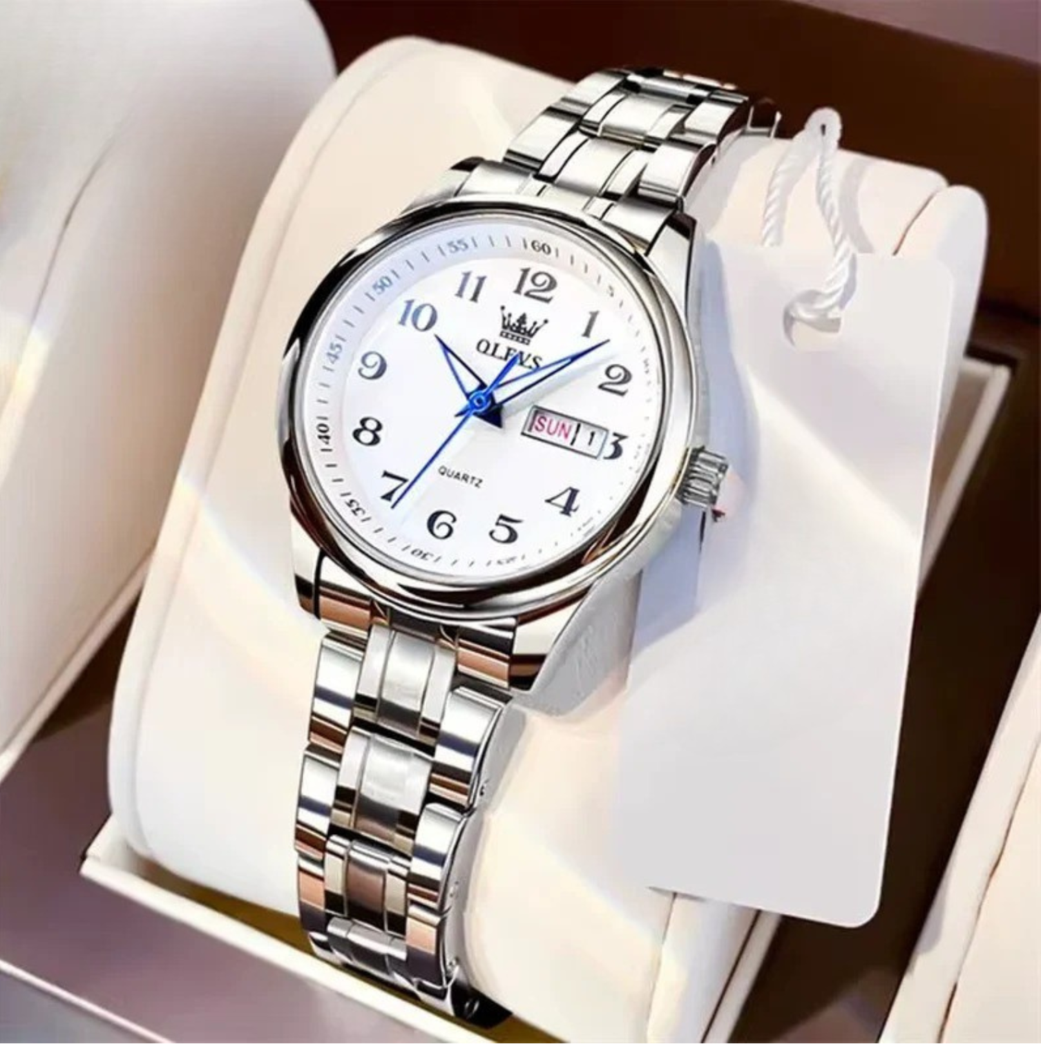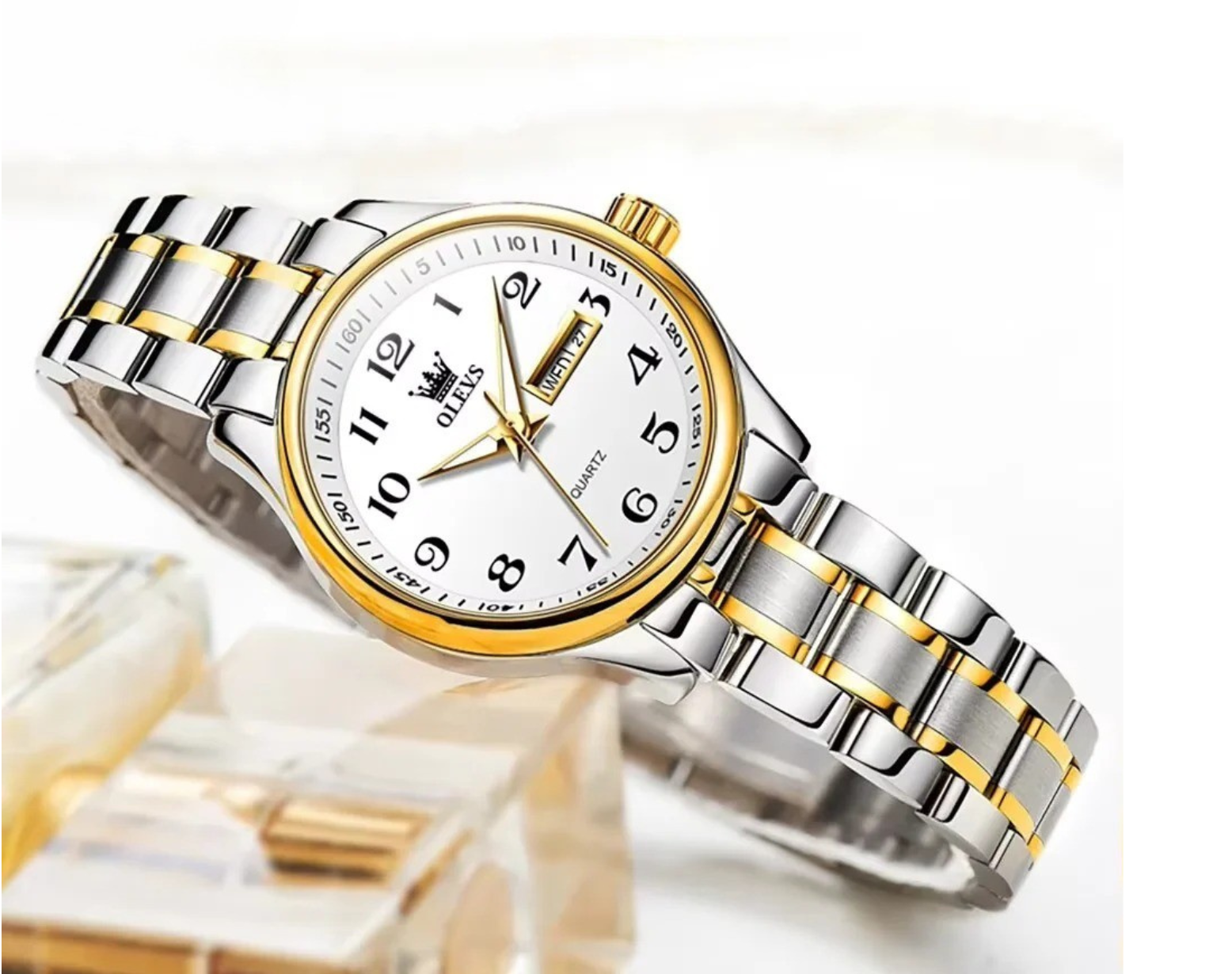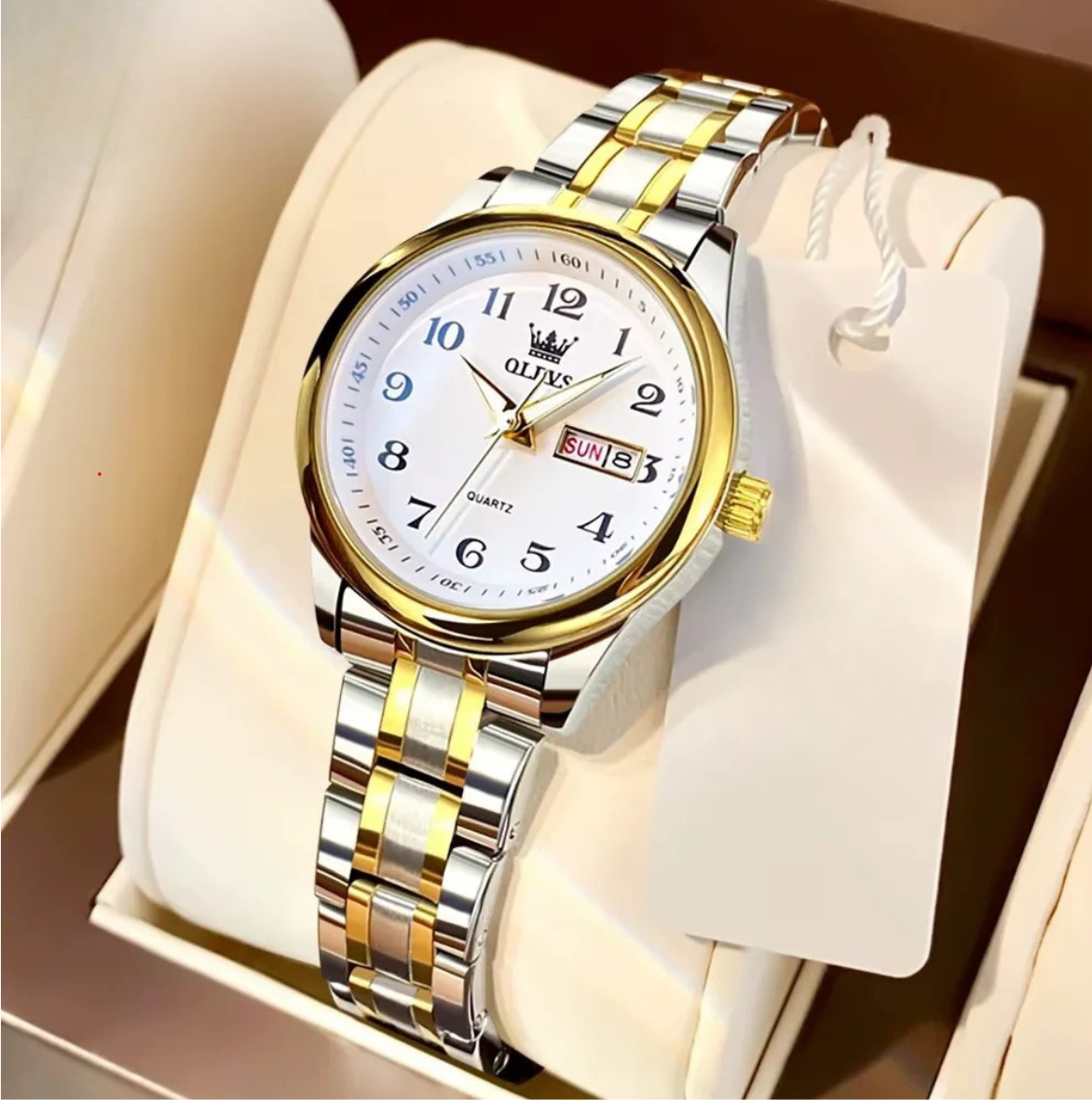 Crafted with a polished silver and gold stainless steel bracelet, this watch embodies both durability and elegance, making it the perfect companion for business, formal evenings, or everyday refinement. The integrated date display adds practicality without compromising style.