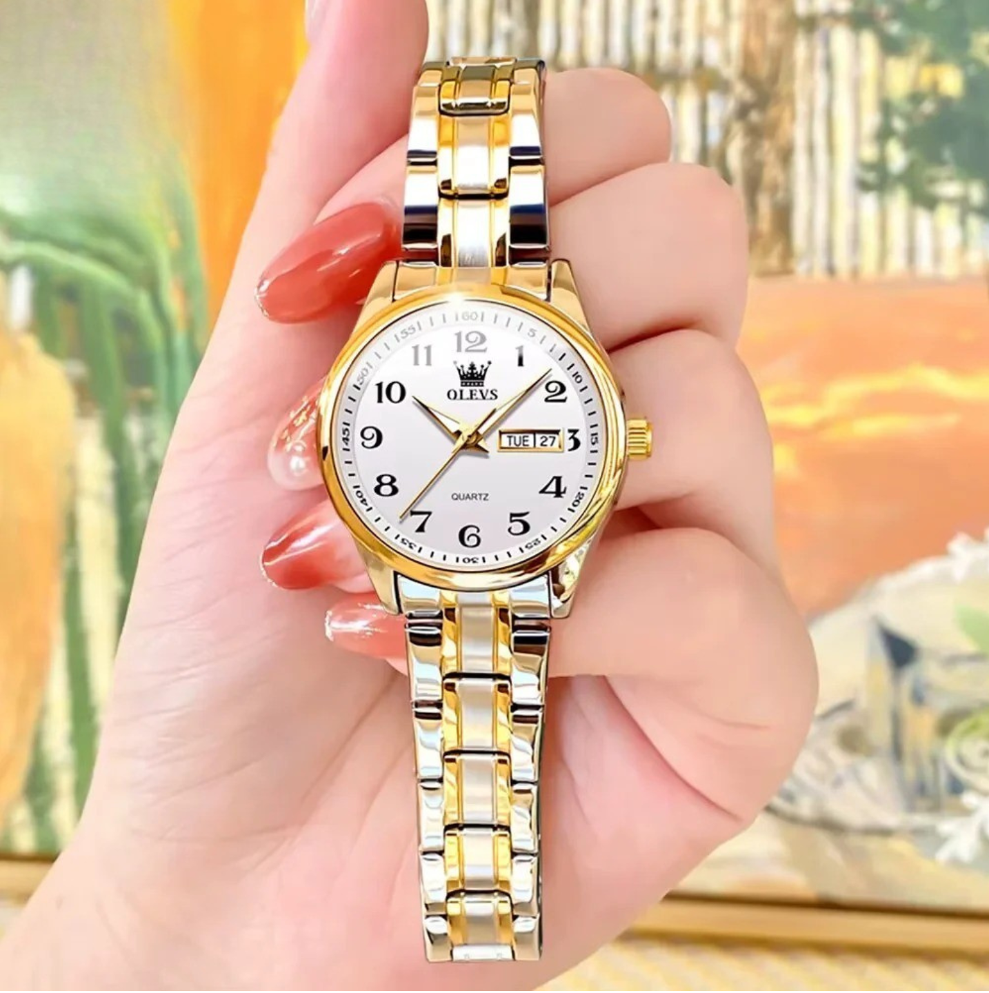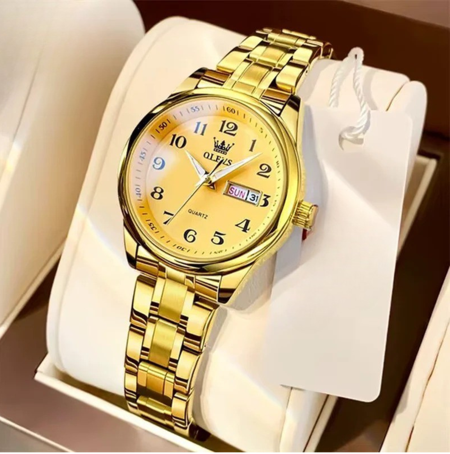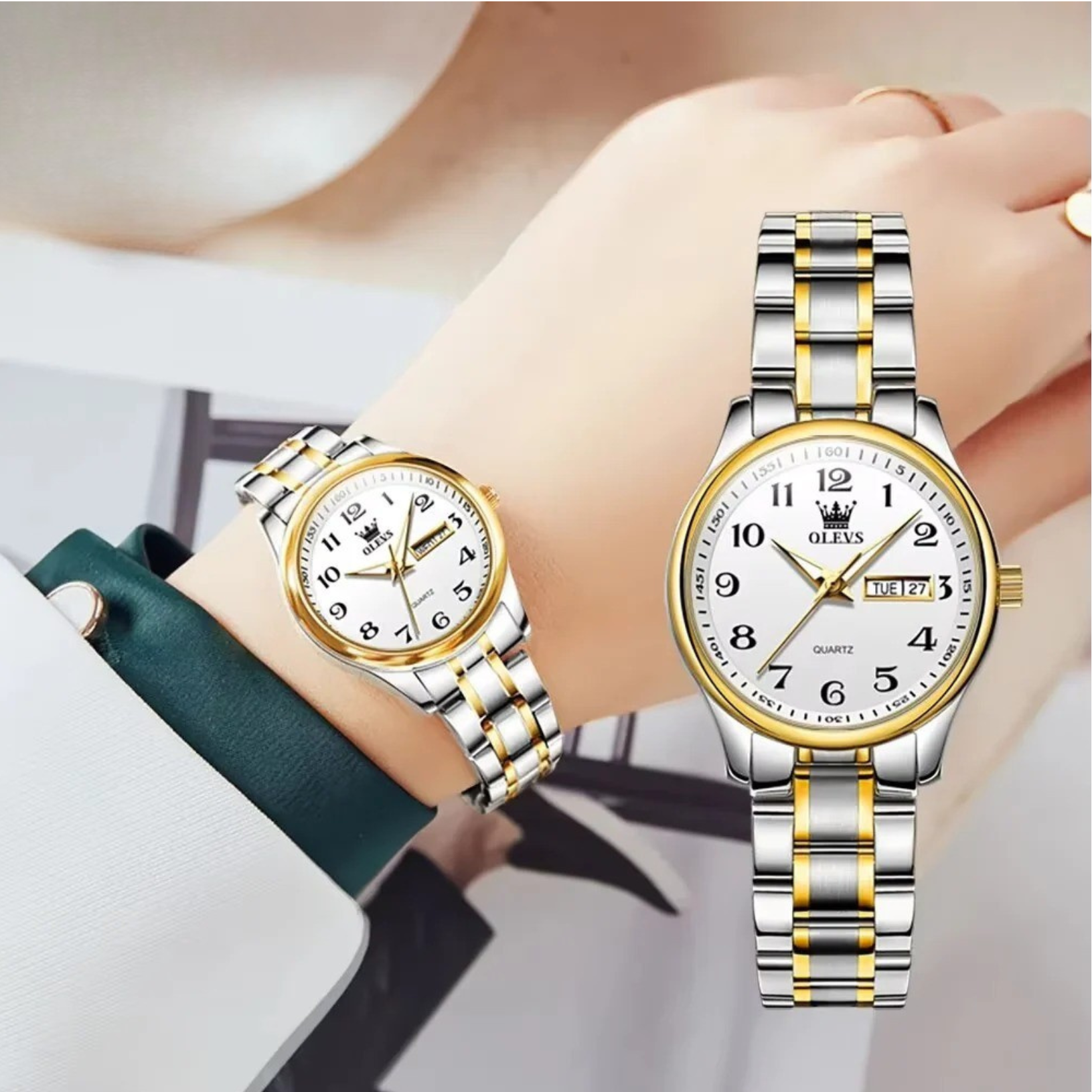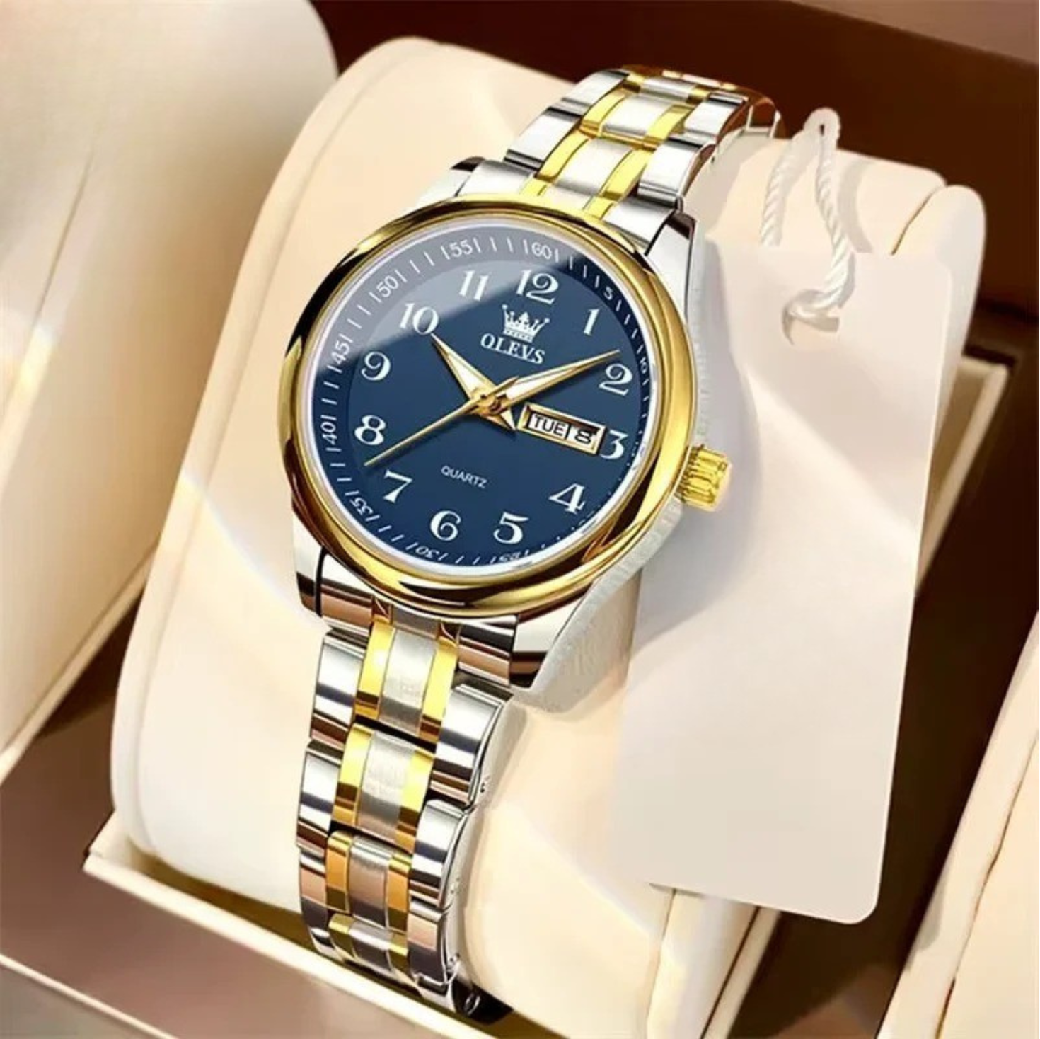 Crafted with a polished silver and gold stainless steel bracelet, this watch embodies both durability and elegance, making it the perfect companion for business, formal evenings, or everyday refinement. The integrated date display adds practicality without compromising style.